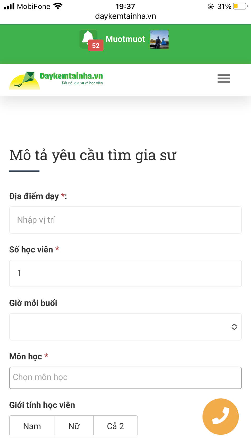 Hệ thống website và ứng dụng Daykemtainha.vn hướng dẫn bạn tham khảo giá học phí chính xác dựa trên form dưới đây đã được lập trình sẵn. Bạn chỉ cần đăng nhập sau đó nhập đầy đủ các thông tin yêu cầu, ví dụ: môn học chọn ‘ Sinh lớp 12 ‘, hệ thống sẽ ra số tiền học phí tự động theo đúng nhu cầu của bạn.