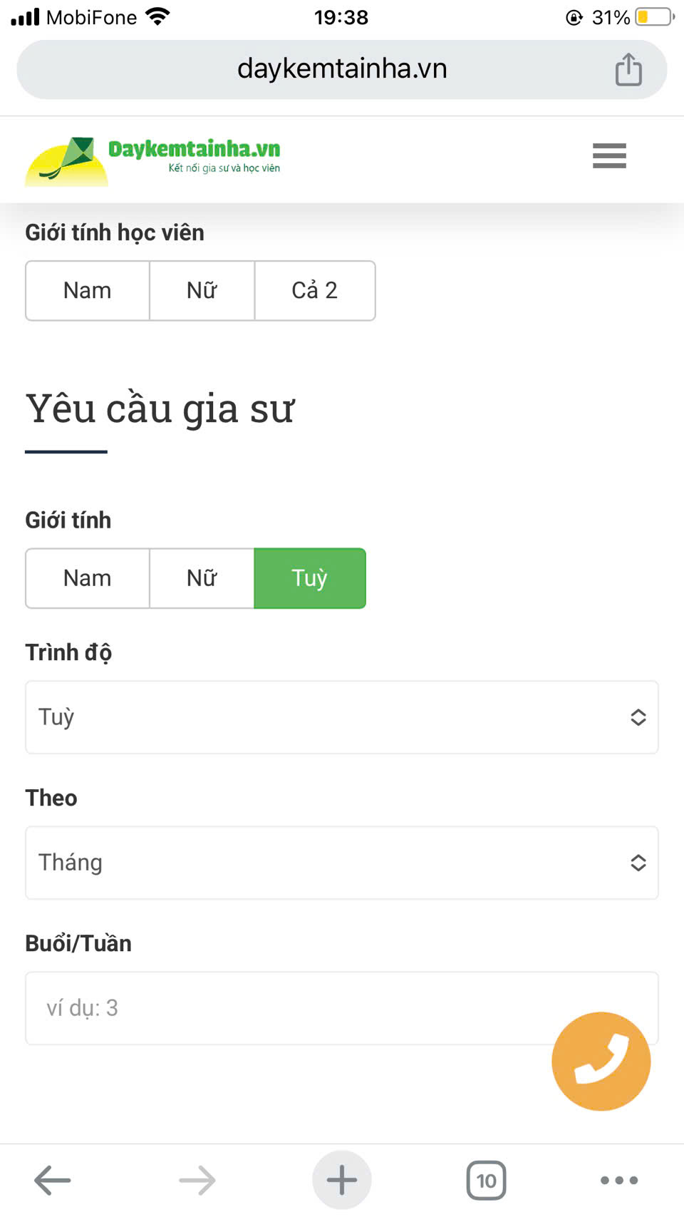 Bạn vào menu “tham khảo học phí”, ra hình như ở dưới, bạn điền và chọn theo form có sẵn các yêu cầu của bạn.